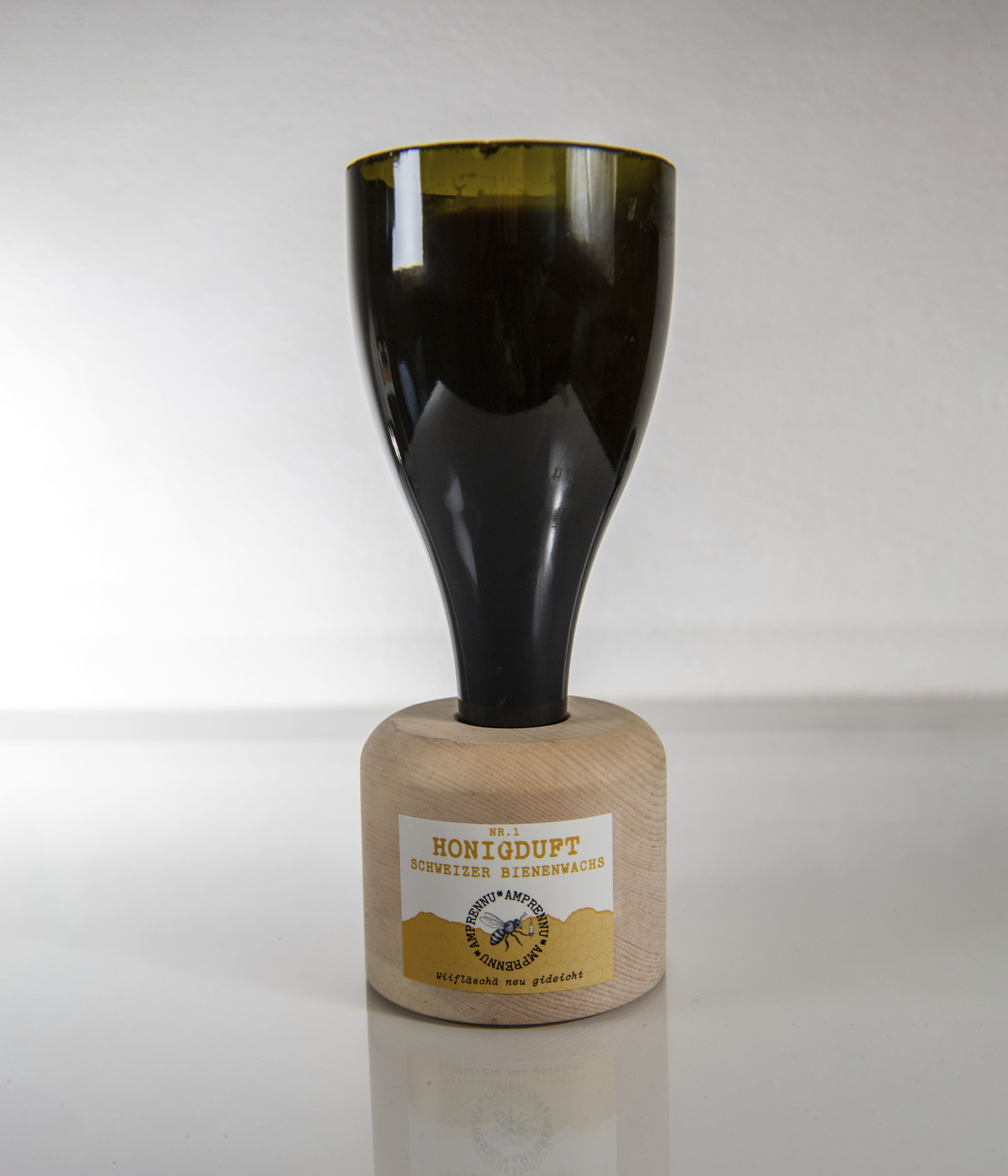 Wir sind "Amprennu" und produzieren aus aufgeschnittenen Weinflaschen und Schweizer Bienenwachs einzigartige Duftkerzen. Unser Name „Amprennu“ mehr »
