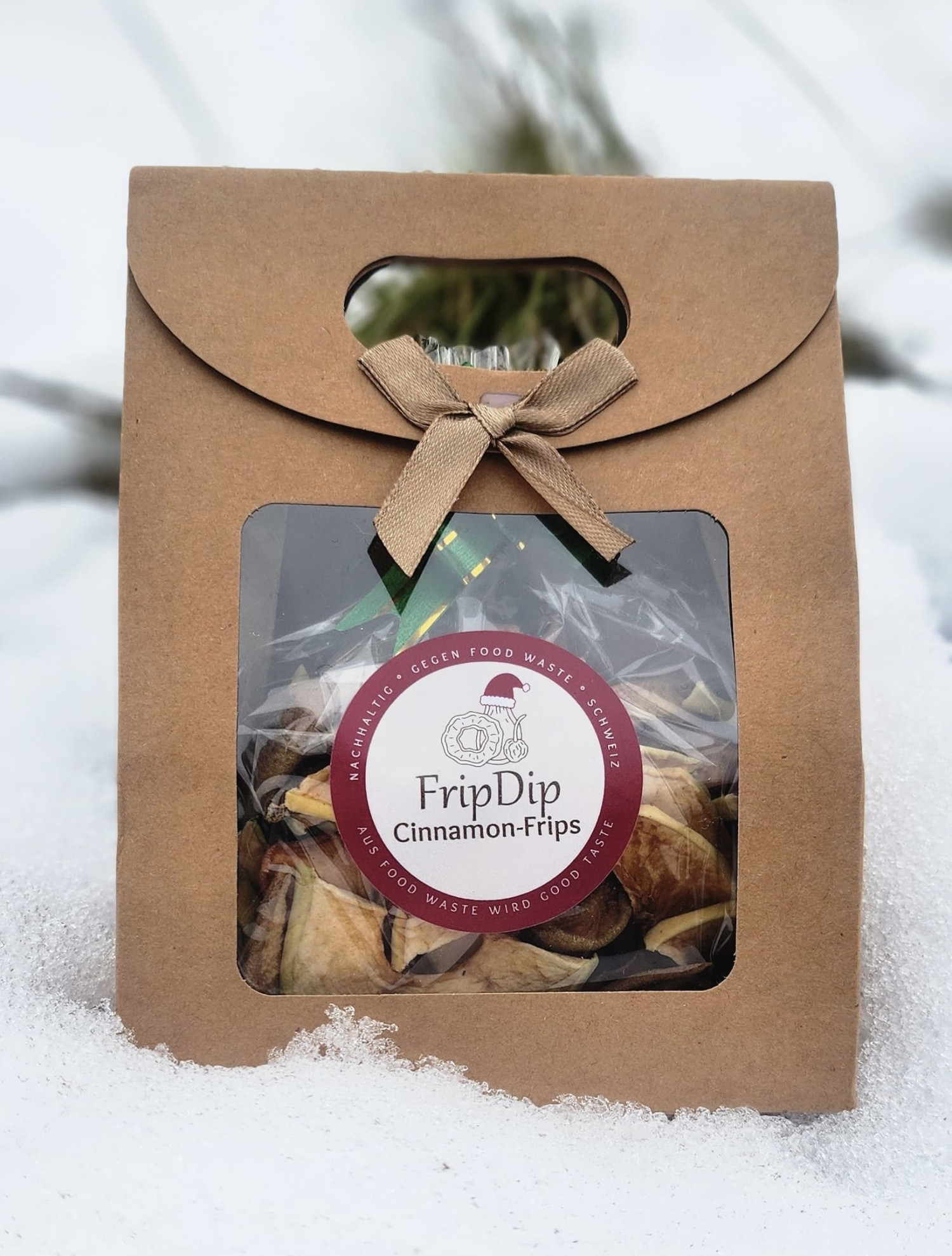 Speziell für die Weihnachtszeit hat FripDip eine neue Sorte kreiert, die sich perfekt als Geschenk eignet: unsere Cinnamon Frips. Die Kombination Apfel, Birne und Zimt hat einen wunderbar winterlichen Geschmack. Einfach köstlich und ideal zum Verschenken.