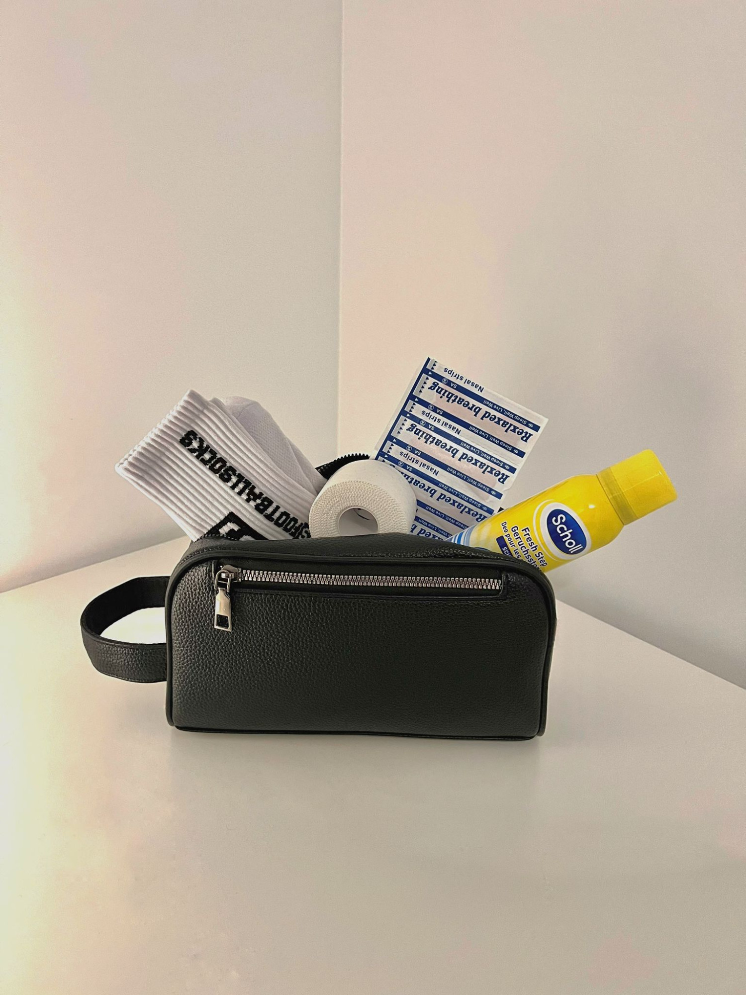 La nostra pochette, personalizzata con il nostro logo, contiene quattro gadget calcistici selezionati per migliorare comfort e prestazioni. Il kit offre praticità, risparmio di tempo, un design sportivo ed elegante, strumenti utili per la performance e una versatilità adatta a tutti i livelli di gioco. Compatto e portatile, garantisce tutto il necessario per prepararsi al meglio a partita o allenamento.
