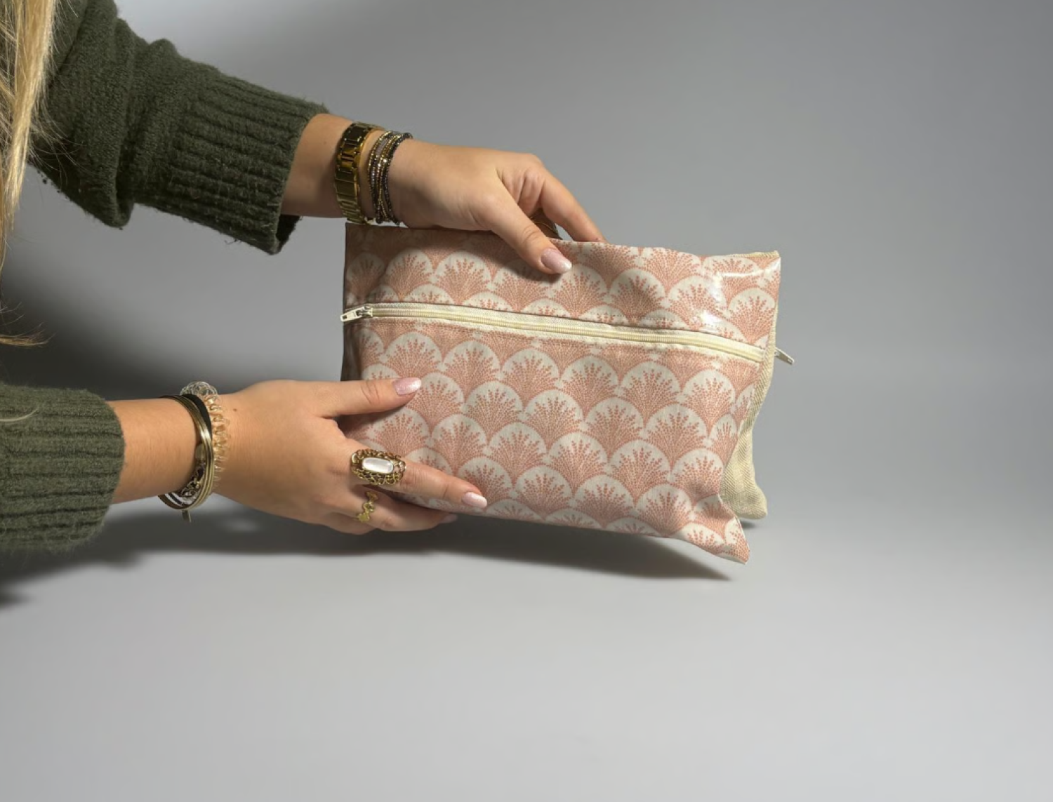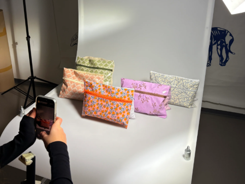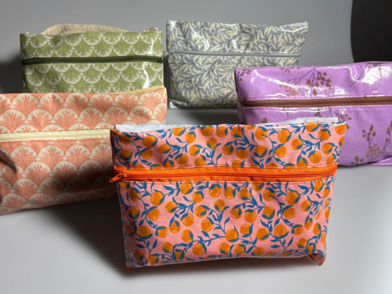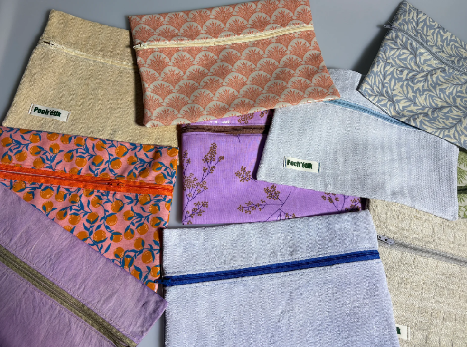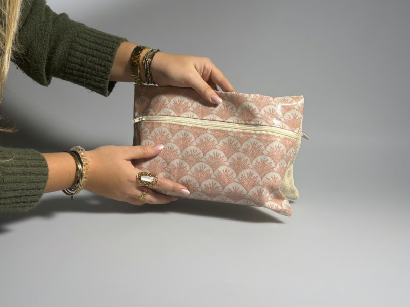 Poch’étik est une pochette divisée en deux compartiments, l’un étanche et l'autre en tissu simple. Nous recyclons de vieilles nappes et nous les teignons à partir de colorants naturels afin de les utiliser pour le côté non imperméable. Le client a la possibilité de composer sa pochette en choisissant les tissus sur le site internet, afin de la rendre unique. Nos tissus sont durables et viennent d’Europe. Nos pochettes sont faites à la main par nos soins. Grâce à leurs dimensions, nos pochettes vous permettront d'y mettre toutes vos affaires, qu’elles soient mouillées ou sèches. Elles se démarquent grâce à leur authenticité et leur engagement envers l'environnement.