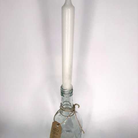 Unser Kerzenständer wird aus dem oberen Teil einer upgecycelten Glasflasche gefertigt. Durch präzises Schneiden und Schleifen entsteht ein elegantes, modernes Design, das perfekt zu unseren Kerzen passt.