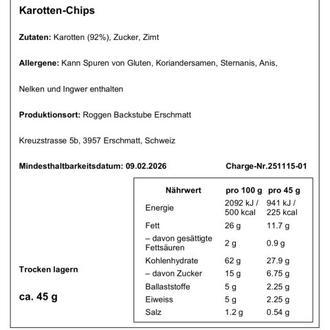 Knusprige Rieblichips aus regionalem, saisonalem Gemüse, fein veredelt mit Zimt und Zucker. Natürlich im Geschmack, schonend verarbeitet und ideal als süßer Snack für zwischendurch.