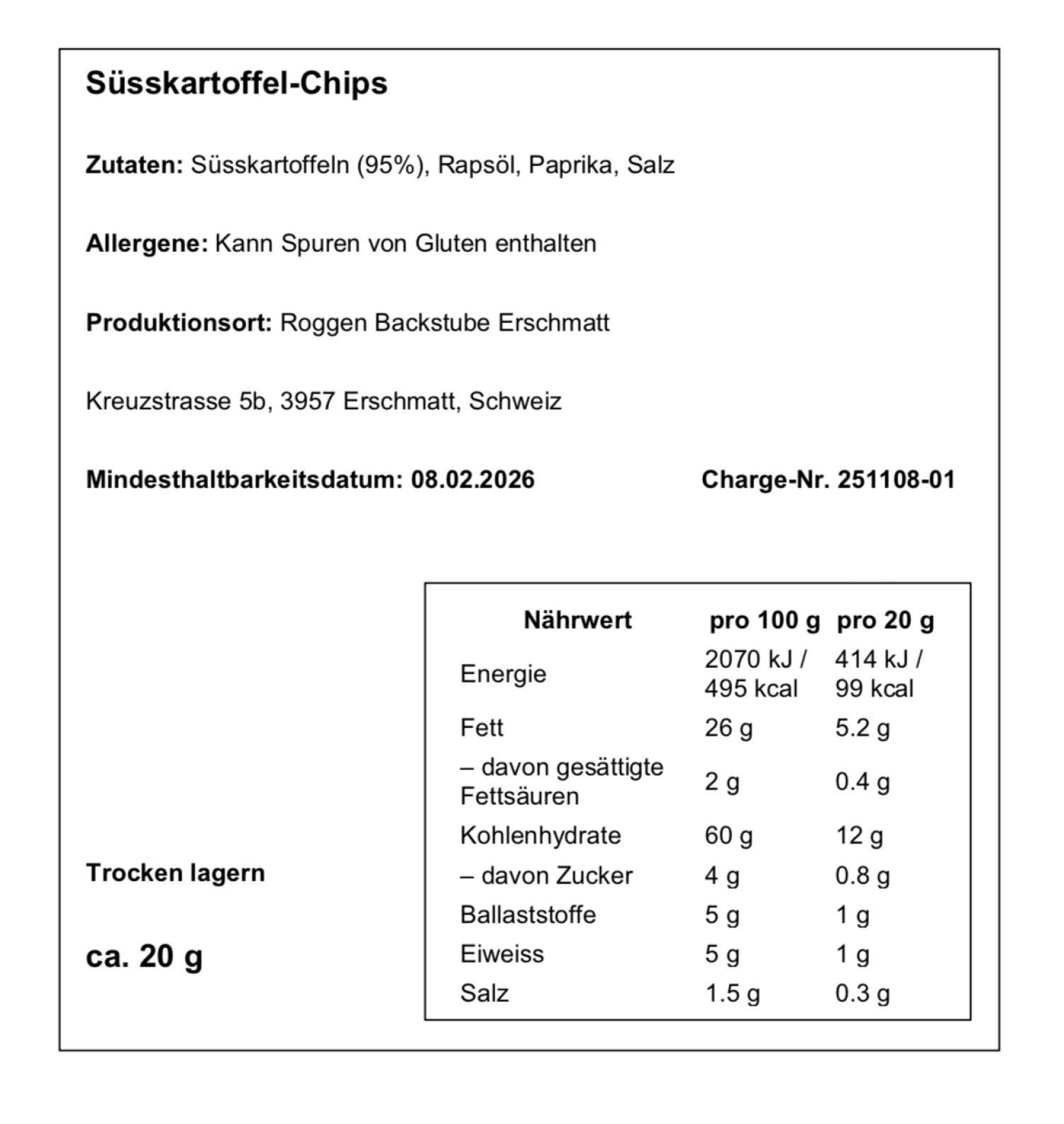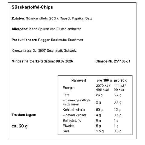 Knusprige Siässhärpfelchips aus regionalem, saisonalem Gemüse, fein veredelt mit Paprika und Salz. Natürlich im Geschmack, schonend verarbeitet und ideal als salziger Snack für zwischendurch.