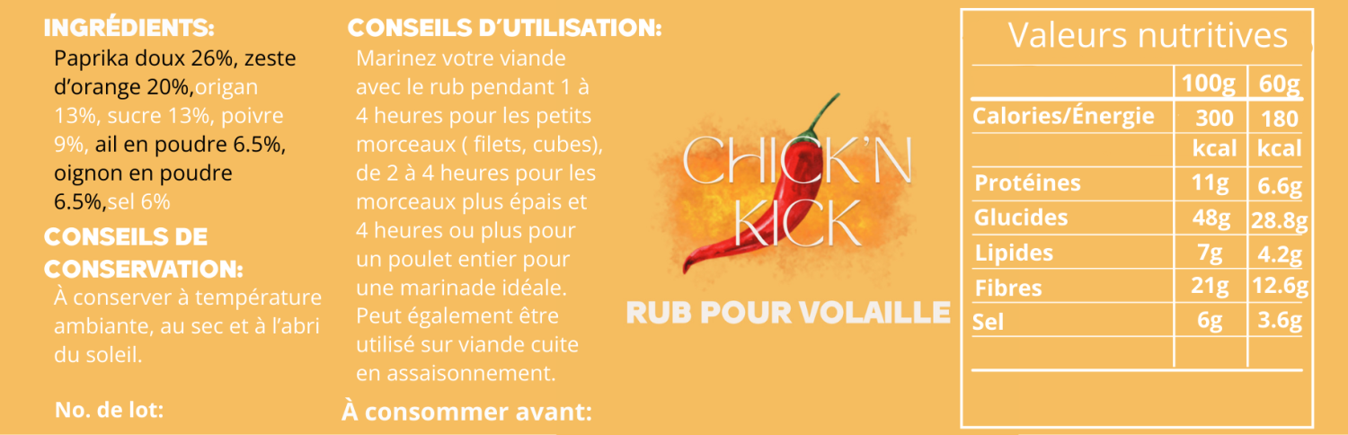 Ce rub aux saveurs aromatiques avec une touche fruitée se marie parfaitement avec la volaille, que ce soit pour un poulet entier ou en filets. Des épices de qualités ainsi qu'une recette unique offre une expérience culinaire authentique.