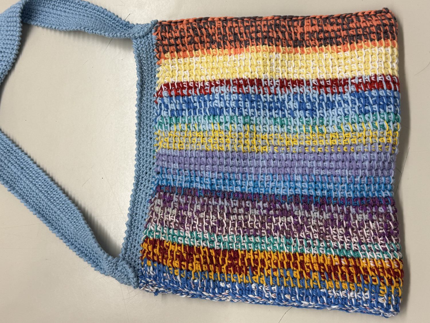 Unsere Tasche hat ihre ganz eigene Geschichte, nicht weil sie durch große Fabriken ging oder industriell gefertigt wurde, sondern wegen der Einzigartigkeit der wunderbaren Person, die sie gemacht hat. Im Inneren findest du einen kleinen Zettel mit zwei besonderen Worten, direkt von der Künstlerin dieses Stücks für dich hinterlassen.