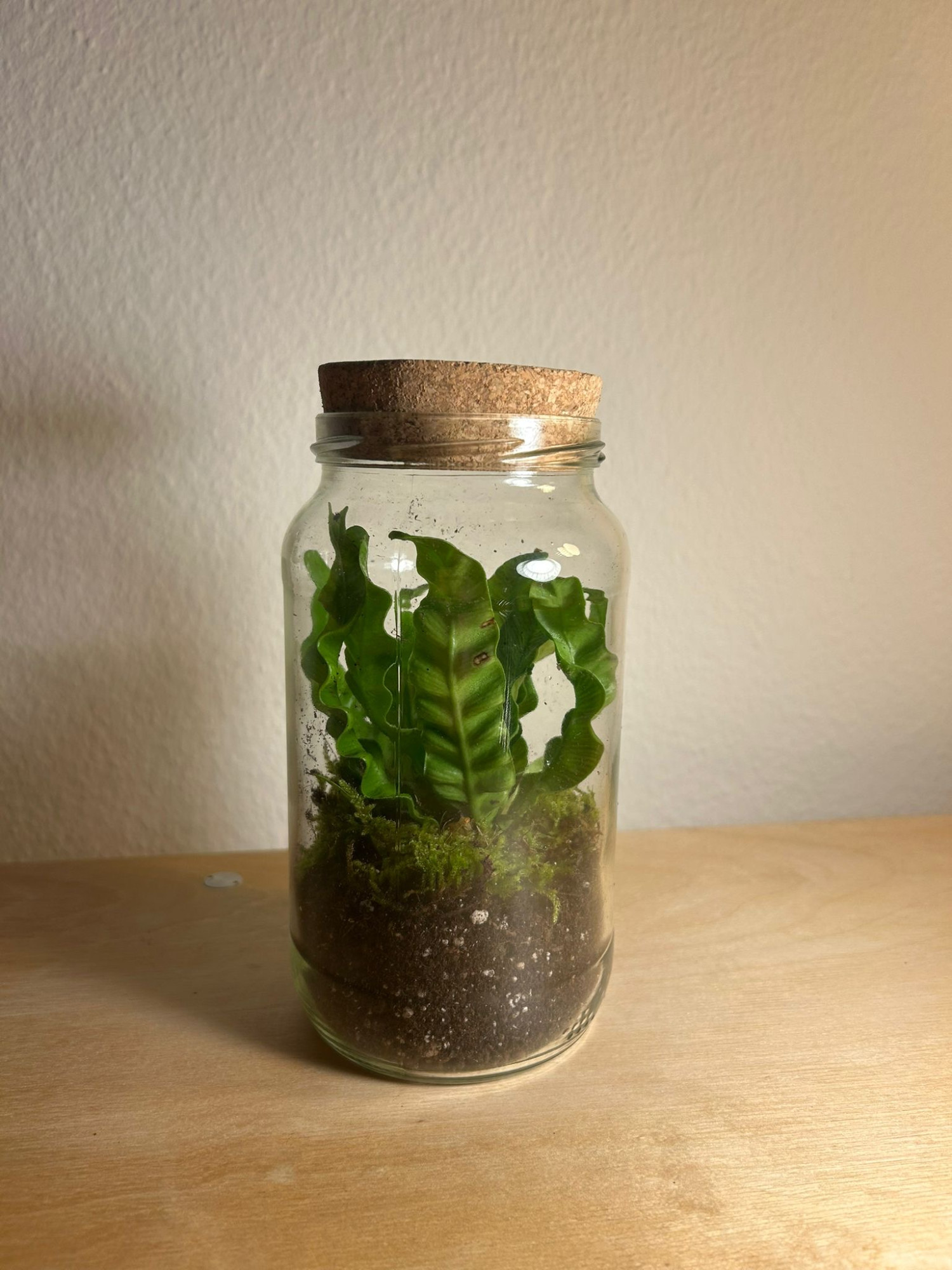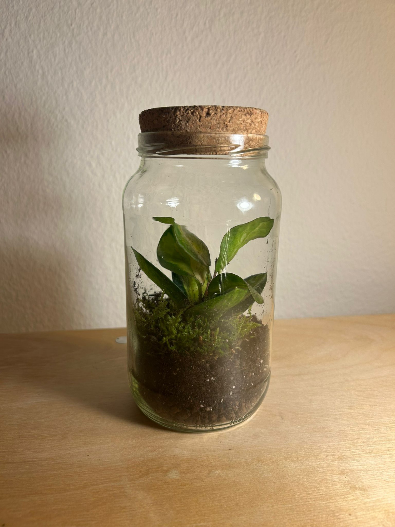 Wir vom Team Terravie stellen einzigartige, nachhaltige Florarien her. Ein Florarium besteht aus einer Pflanze, die umgeben von Moos, in einem Glas angepflanzt ist. Die Pflanze wird von uns vor dem Verschliessen noch einmal von unserem Team gegossen. Danach mit einem Korkdeckel luftdicht verschlossen. Somit baut die Pflanze innerhalb des Glases mithilfe des Mooses ein eigenes kleines Ökosystem auf, sie verpflegt sich also selbst. Unsere Florarien nehmen dir die Last vom alltäglichen giessen und pflegen von deiner Pflanze und lässt dir trotzdem ein Stück Natur in deinem Alltag. Die Natur liegt uns sehr am Herzen und da wir Moos mit Einwilligung des Försterverbandes nachhaltig sammeln, wollen wir auch etwas der Schweizer Natur zurückgeben, somit spenden wir 50. Rappen pro Florarium an das Zürcher Waldlabor.