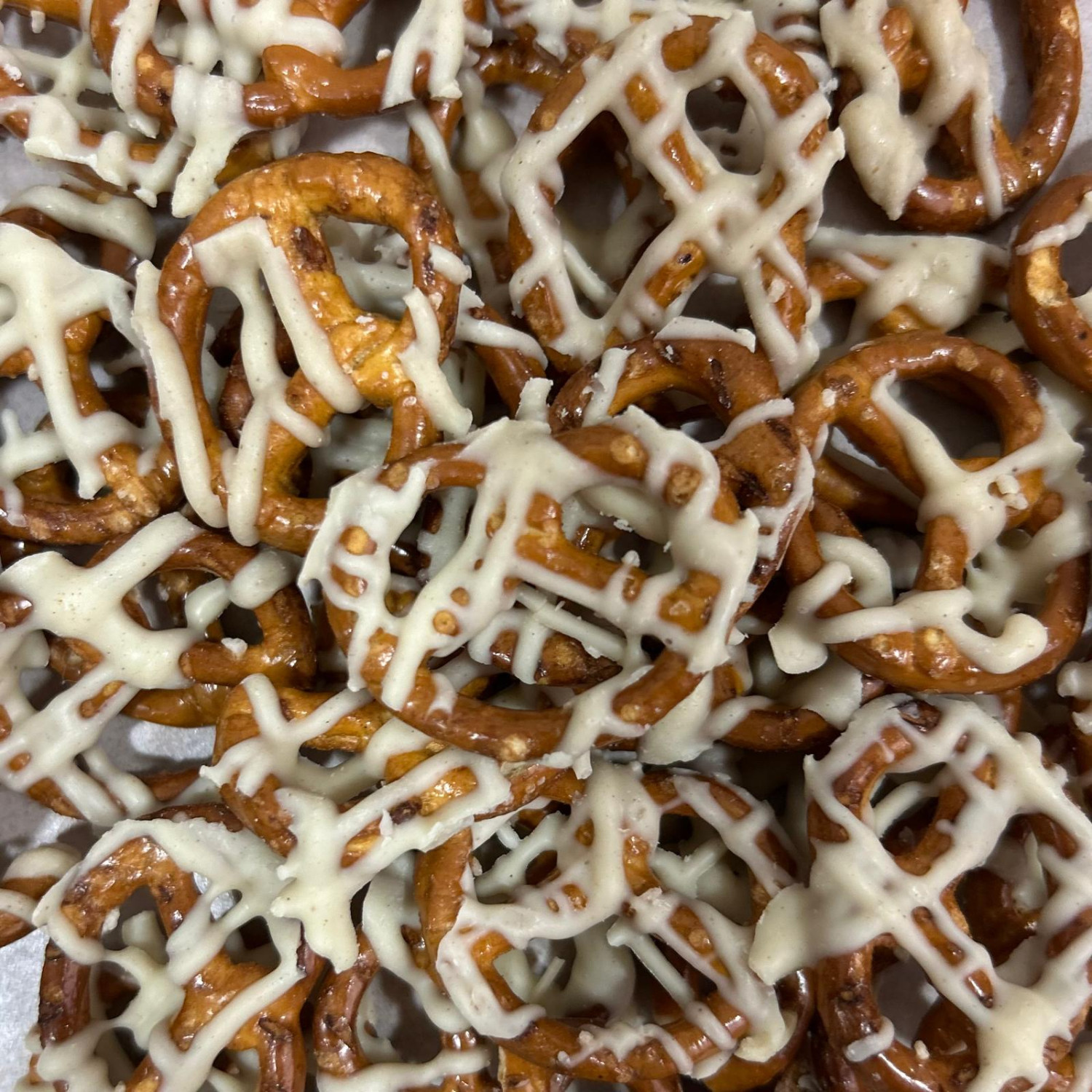 Köstliche Mini-Brezeln mit weisser Schokolade und Zimt.