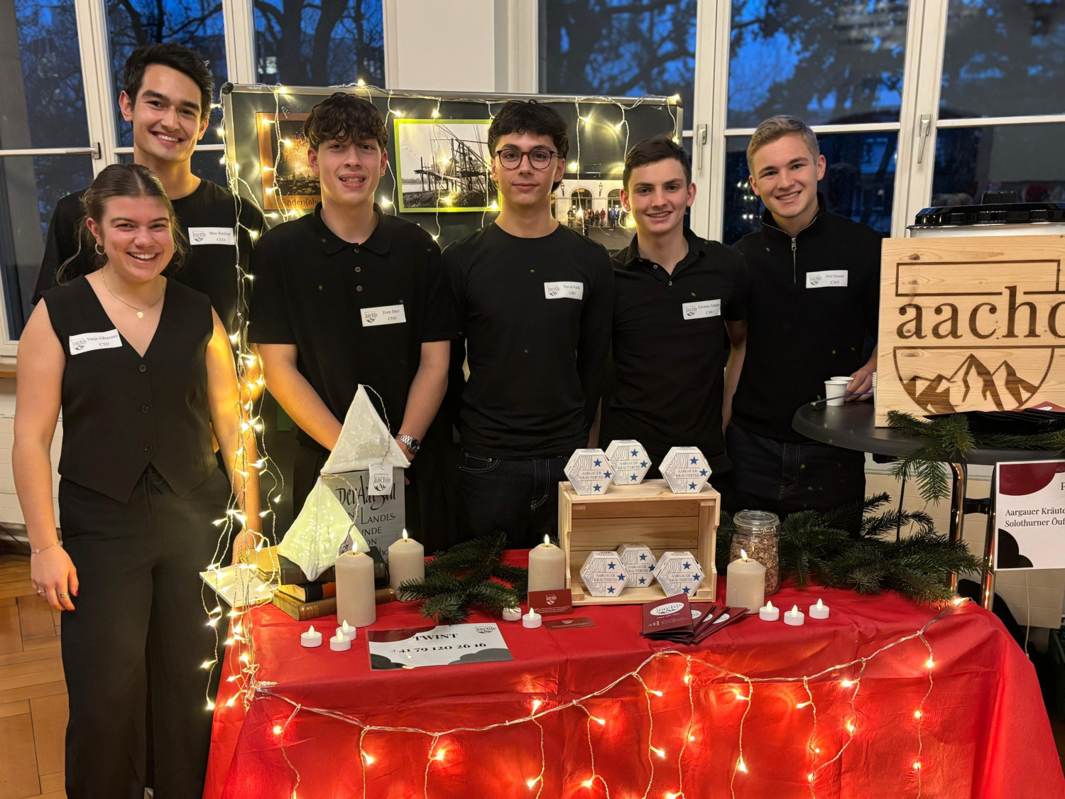 Wir von Aacho bringen mit unseren Teemischungen die Schweiz und ihre Vielfalt in die Tasse. Jede Sorte repräsentiert einen Teil der Schweiz und vereint regionale Zutaten, Nachhaltigkeit und Geschichten zu einem besonderen Genusserlebnis. Über einen QR-Code auf jeder Packung können unsere Kundinnen und Kunden spannende Geschichten zum jeweiligen Kanton entdecken, so wird die Teezeit zur kleinen Schweizreise. Unter dem Motto „Mee als Tee“ engagieren wir uns für die UN-Nachhaltigkeitsziele zu Gesundheit, Bildung und nachhaltigem Konsum. Wir sind ein Team von sieben teebegeisterten Jugendlichen der Alten Kantonsschule Aarau und möchten zeigen, dass Genuss, Wissen und Gemeinschaft zusammengehören mit Tee, der Herz und Herkunft verbindet. Wir möchten Leute zusammenbringen, Gespräche anregen und den zwischenmenschlichen Austausch in einer Welt, in der sich immer mehr Menschen distanzieren, fördern. Es liegt uns sehr am Herzen, Freude zu verbreiten und Menschen ein Lächeln ins Gesicht zu zaubern. Sei es mit unseren Tees und den Geschichten, die sie mit sich bringen.