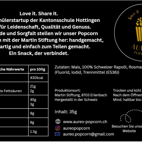 Wir sind sieben motivierte SchülerInnen der Kantonsschule Hottingen und haben mit viel Leidenschaft Aureo Popcorn gegründet – eine edle und more »