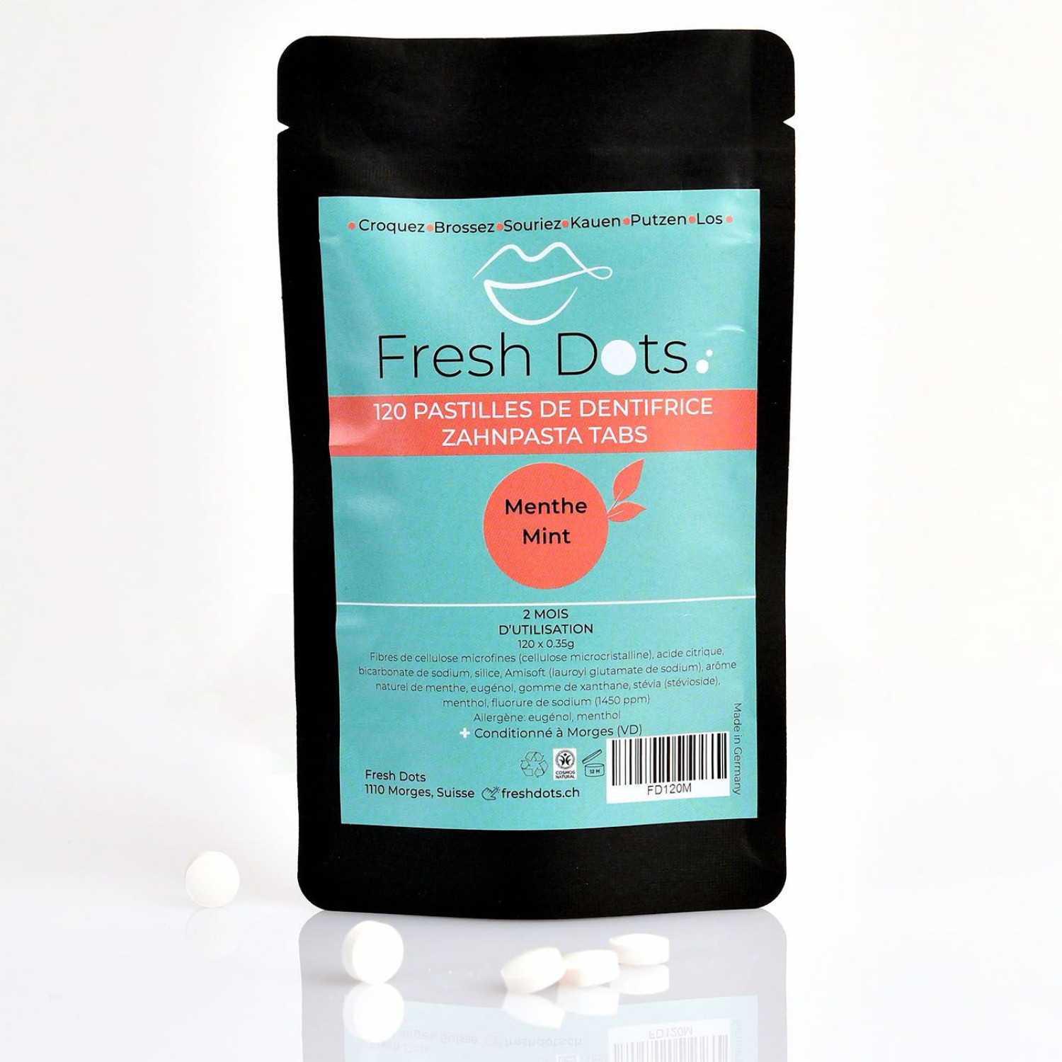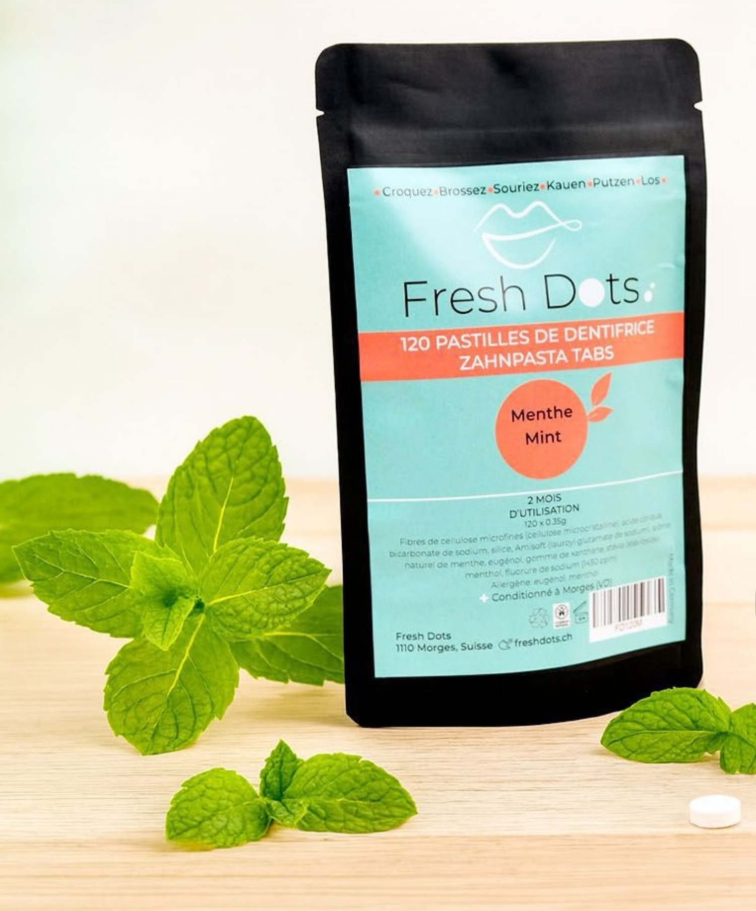 Pastilles de dentifrice à la menthe (Sachet de 120 pastilles)