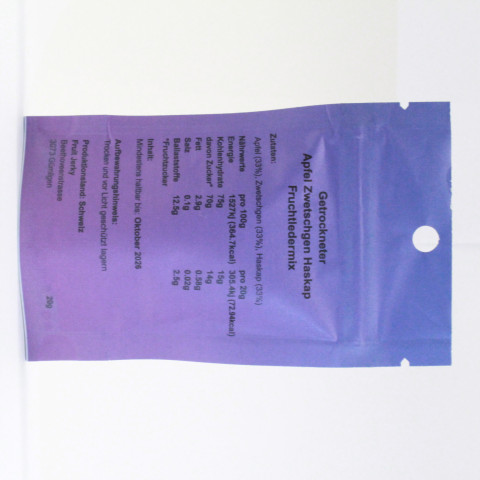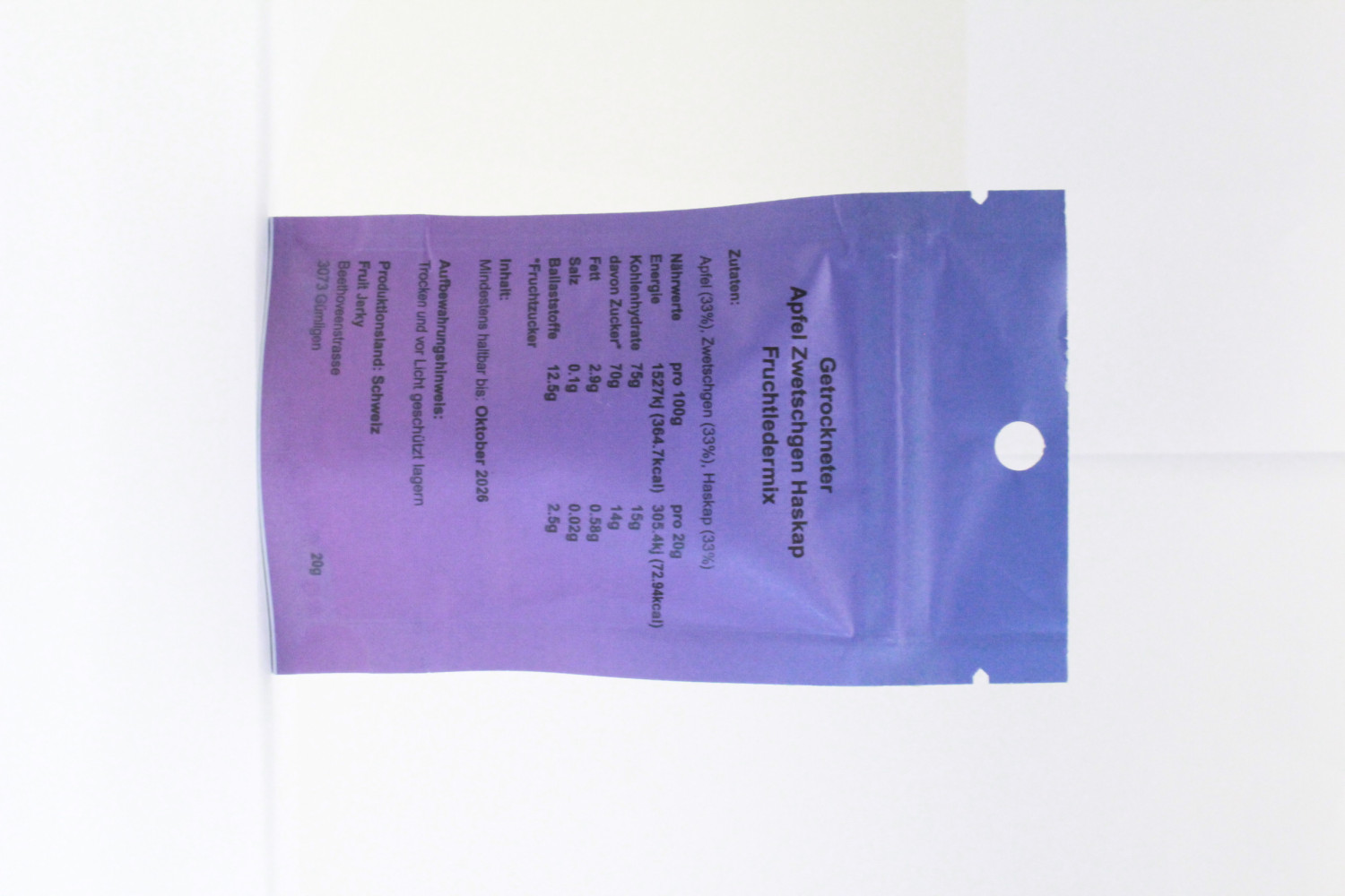 Getrockneter Fruchtledermix aus Haskap-Beeren und Zwetschgen, verdünnt mit getrockneten Äpfel.