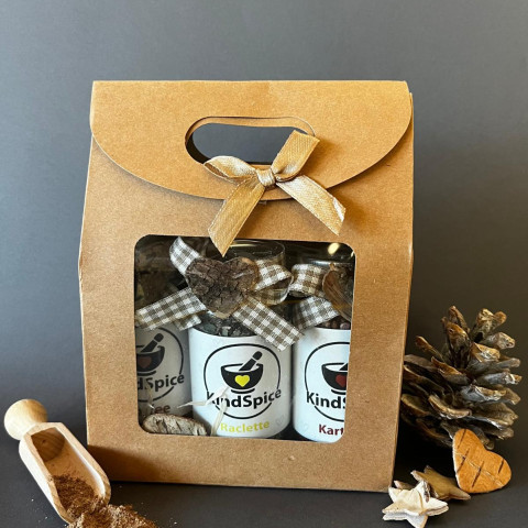 Um die vielfältigen Geschmackserlebnisse von KindSpice zu entdecken, ist nun auch unser Dreier-Geschenkset erhältlich. Es vereint unsere drei beliebten Gewürze und verleiht Gerichten von herzhaften Kartoffelgerichten über Raclette bis hin zu kreativen Rezepten das gewisse Extra. Perfekt zum Verschenken oder für gemütliche Momente mit Familie und Freunden.