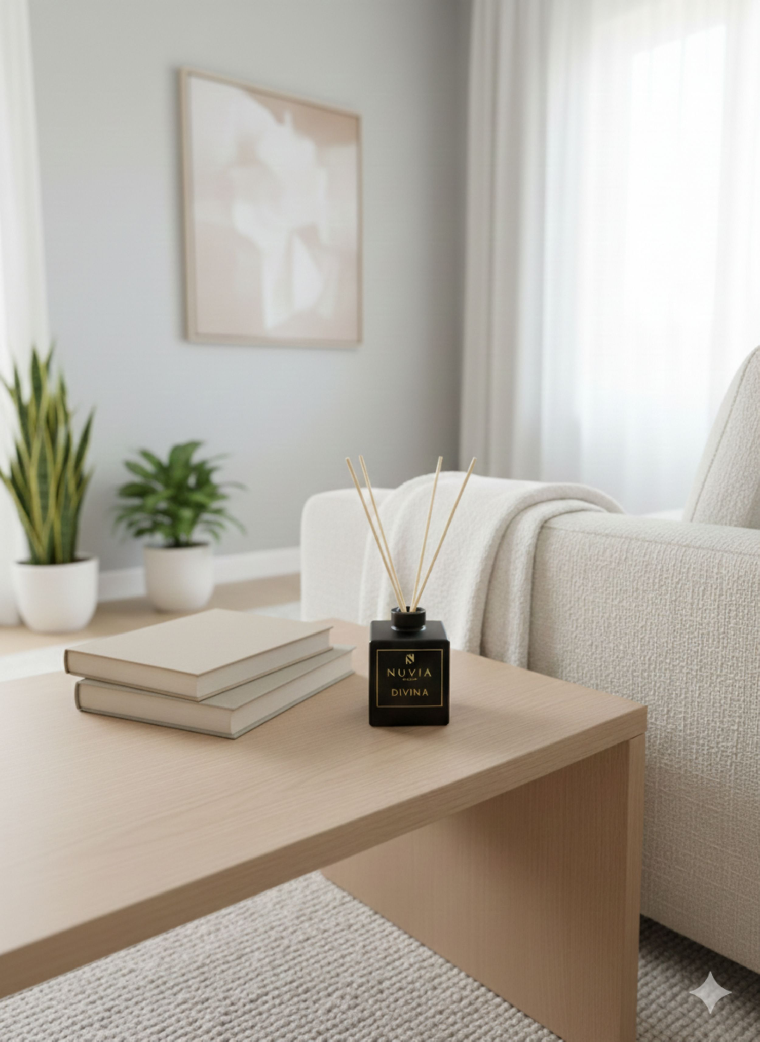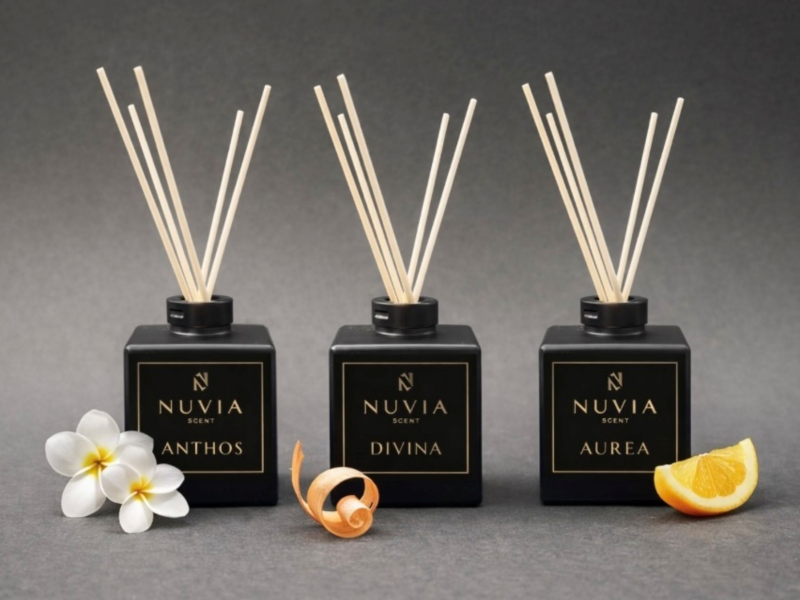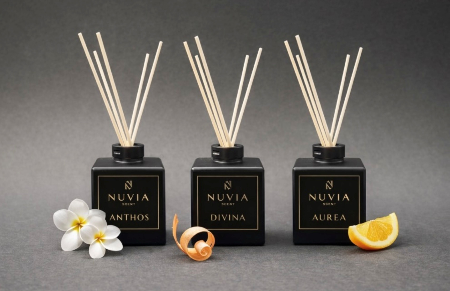 Nuvia Scent entwickelt hochwertige, handgefertigte Raumdüfte, die eine elegante und natürliche Atmosphäre schaffen. Der Markenname verbindet das altgriechische Wort „Nuvia“ für „Wolke“ mit dem englischen „Scent“ für „Duft“ – eine Kombination, die die Leichtigkeit und Feinheit unserer Duftkompositionen treffend beschreibt. Unser Team vereint unterschiedliche Stärken und kreatives Denken, wodurch Düfte entstehen, die natürlich wirken, ausgewogen komponiert sind und verschiedene Raumstimmungen unterstützen. Wir legen grossen Wert auf sorgfältige Handarbeit, ausgewählte Inhaltsstoffe und ein harmonisches, langanhaltendes Dufterlebnis. Das Erscheinungsbild von Nuvia Scent ist von klarer Eleganz geprägt: Das Corporate Design in Schwarz und Gold verleiht unseren Produkten Hochwertigkeit und Wiedererkennungswert. Das stilisierte „N“ im Logo steht für unseren Namen und die moderne, ästhetische Ausrichtung der Marke. Mit dem Slogan „Dein Raum. Dein Duft.“ betonen wir die Individualität unserer Kundinnen und Kunden. Jede Duftnote soll Räume nicht nur veredeln, sondern ihnen eine persönliche, stimmungsvolle und charaktervolle Atmosphäre verleihen. Nuvia Scent steht für feine Duftkultur, Ästhetik und handwerkliche Präzision – für besondere Düfte, die jeden Raum bereichern.