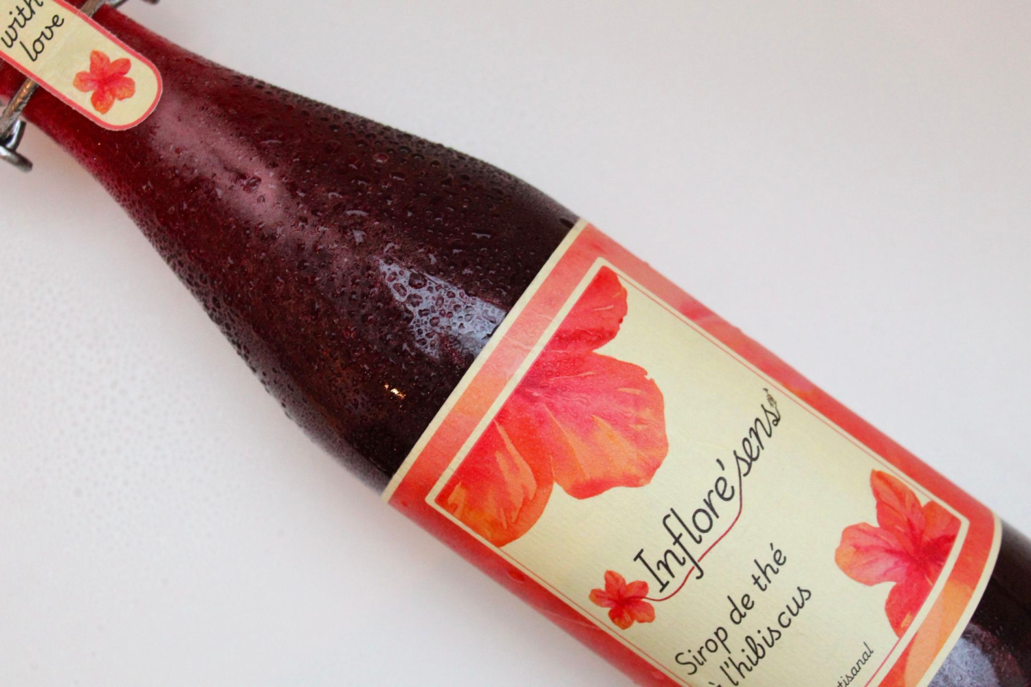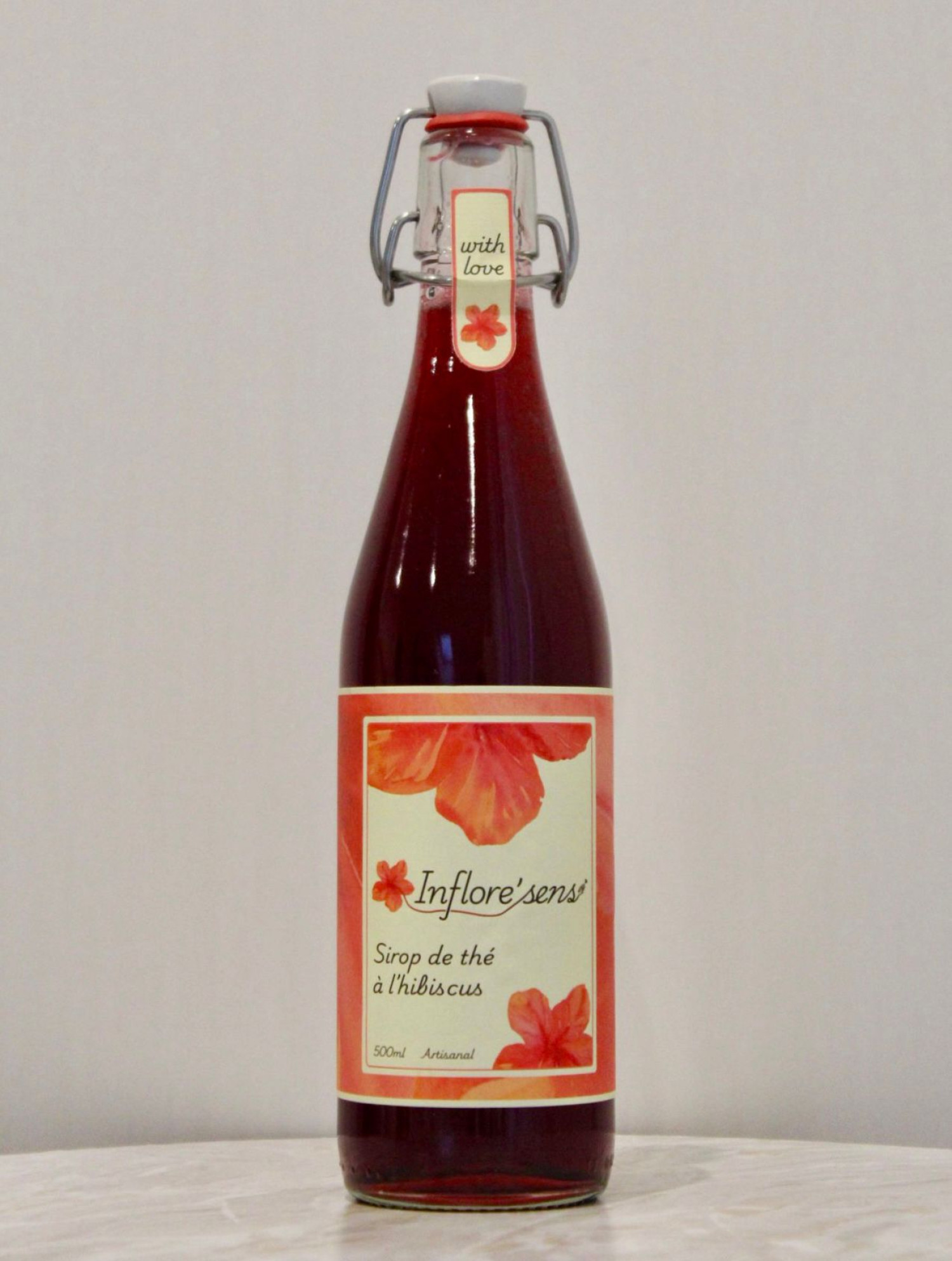 Nous proposons un délicieux sirop de thé à l’hibiscus qui, une fois dilué vous donne un thé froid ou chaud selon votre envie. Notre sirop ne contient aucun conservateur, tous nos ingrédients sont issus de l’agriculture biologique et aucun plastique n’est utilisé durant tout le processus de production. Notre sirop, une fois dilué, donne entre 6 et 8 litres de thé. Une fois ouverte, la bouteille se conserve au frais et doit être consommée dans les cinq mois qui suivent. Une consigne de 2.50 CHF est appliquée pour chaque bouteille, que vous pouvez retourner aux emplacements indiqués sur notre site Internet.