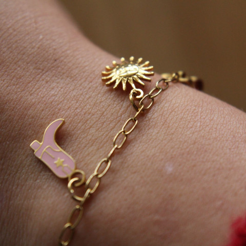 Nous proposons à nos clients des bracelets en acier inoxydable doré personnalisables : chaque client peut composer son bracelet parmi une sélection de charms et ainsi se créer un bijou unique et intemporel, rempli de souvenirs.