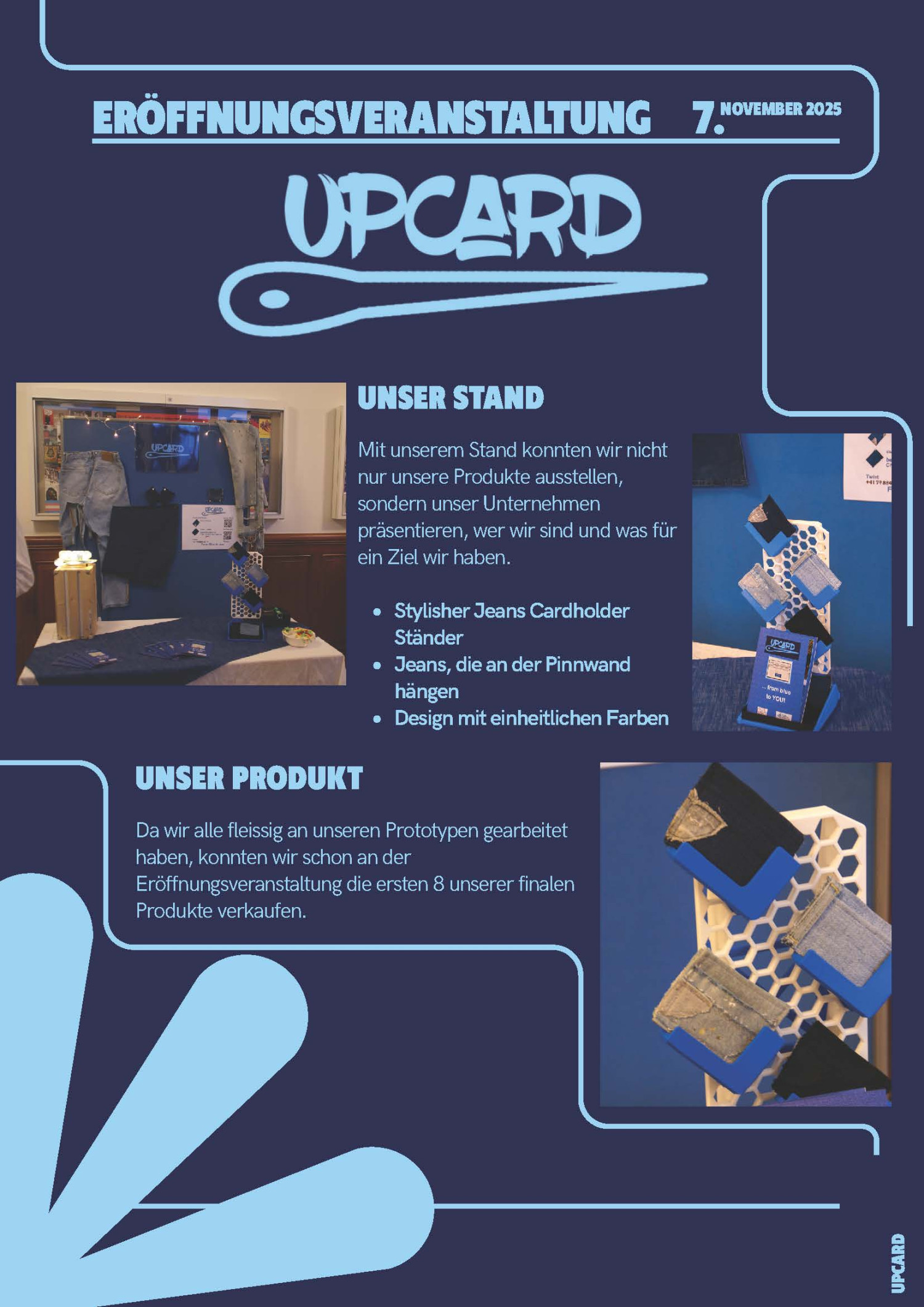 Wir stellen Kreditkartenetuis her, sogenannte Cardholder. Ihre Funktion ist es, den Alltag zu erleichtern und das Hantieren mit den wesentlichen vier Karten zu vereinfachen. Wir geben gebrauchten Materialien, wie z.B. Jeans, Taschen etc. ein neues Leben. Für Kundenwünsche sind wir offen. Zusätzlich bieten wir laufend Informationen zum Thema Ordnung an.
