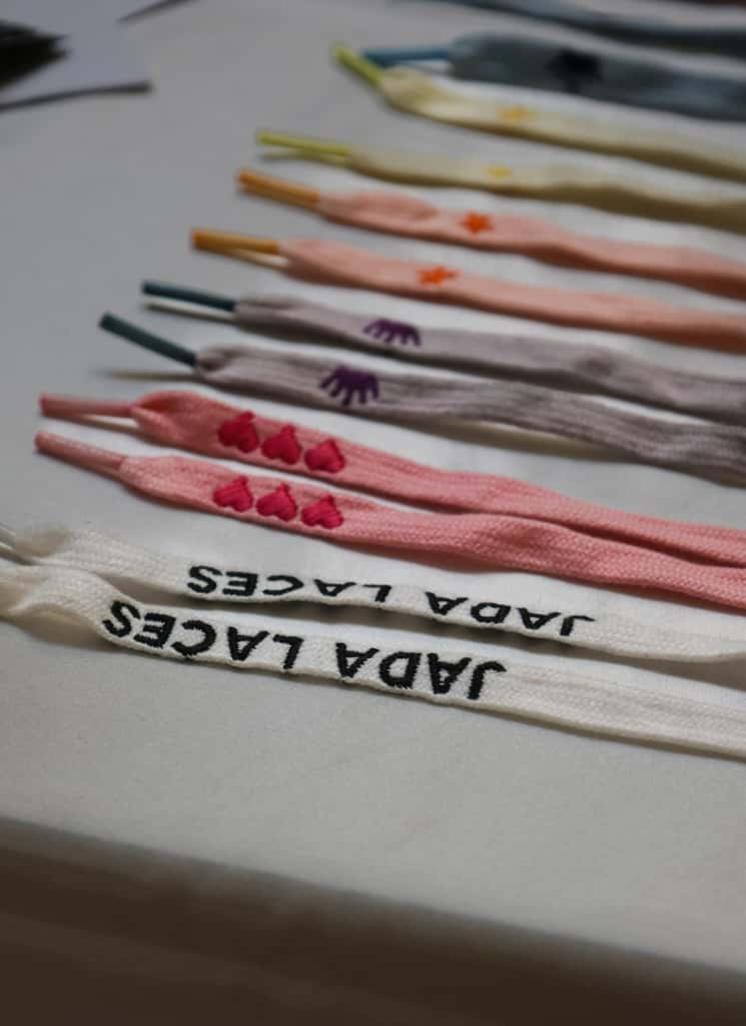 Der Name JADA LACES besteht aus den Anfangsbuchstaben der vier Unternehmern: ,,J'' für Joshua, ,,A'' für Albion, ,,D'' für Diogo und ,,A'' für Amael.