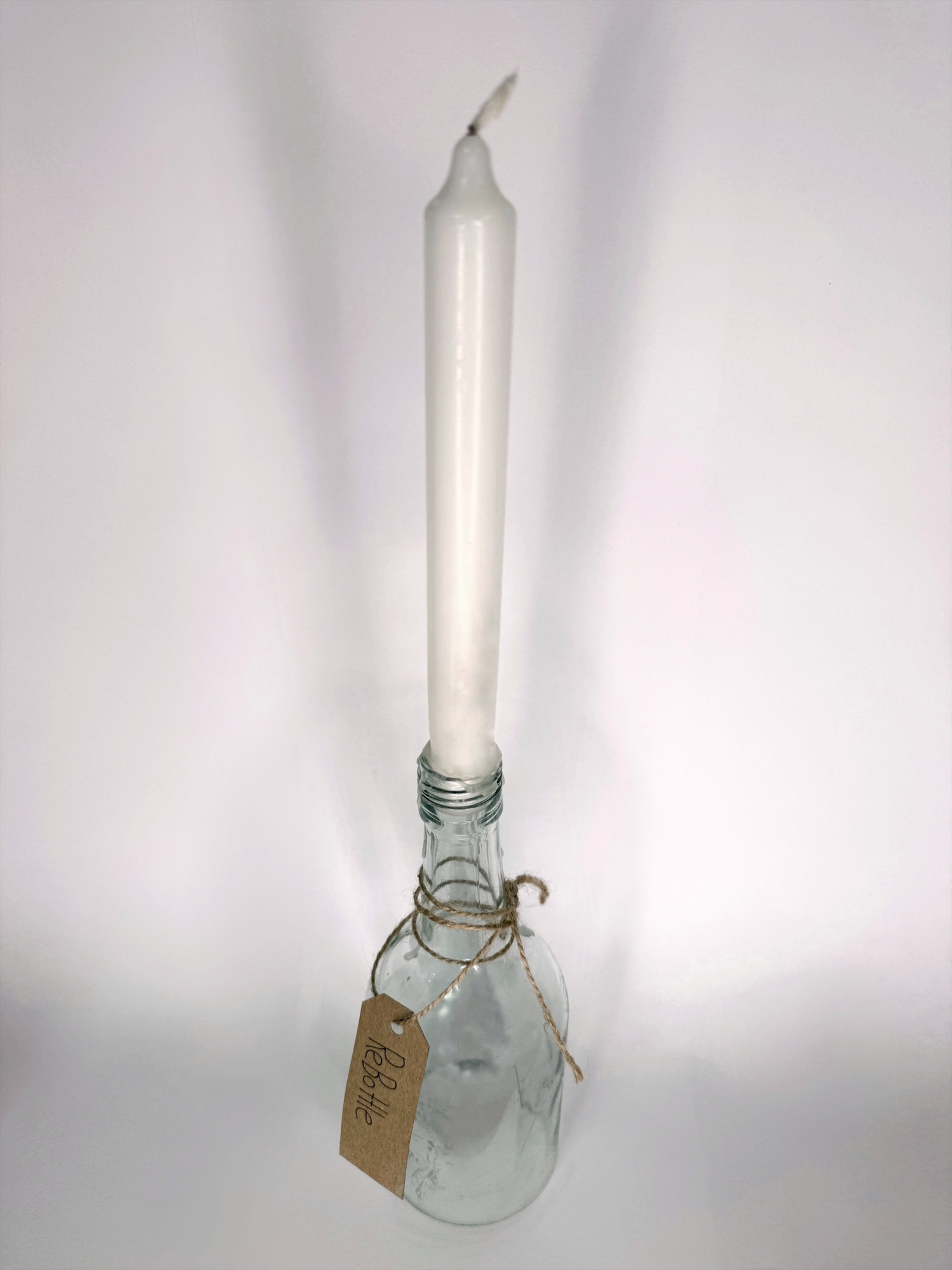 Unser Kerzenständer wird aus dem oberen Teil einer upgecycelten Glasflasche gefertigt. Durch präzises Schneiden und Schleifen entsteht ein elegantes, modernes Design, das perfekt zu unseren Kerzen passt.