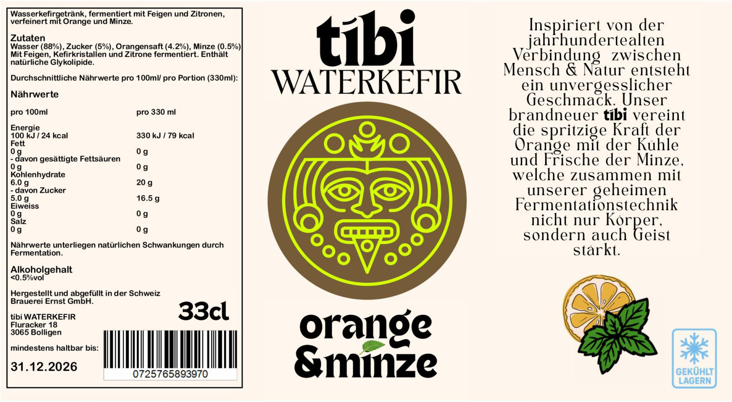 Inspiriert von der jahrhundertealten Verbindung zwischen Mensch & Natur entsteht ein unvergesslicher Geschmack. Unser brandneuer tíbi vereint die spritzige Kraft der Orange mit der Kühle und Frische der Minze, welche zusammen mit unserer geheimen Fermentationstechnik nicht nur Körper sondern auch Geis stärkt.